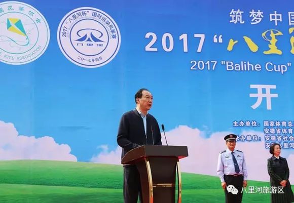 26日上午,国家体育总局社体中心副主任、中国风筝协会主席、国际风筝联合会副主席刘北剑出席并宣布大赛开幕,安徽省社会体育指导中心书记王勇、颍上县委副书记丁思彬出席活动并分别致辞,随后进行运动员宣誓、裁判员宣誓。